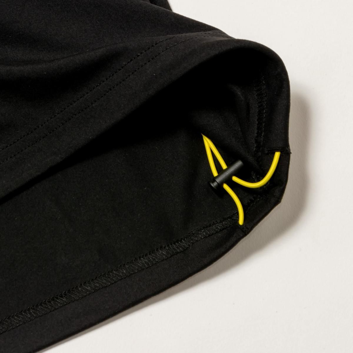 4cmの長さの衿リブと、控えめなロゴプリントがコーディネートを引き立てるモックネックTシャツです。伸縮性に優れた肌触りのいい素材と、裾のドローコードで快適にお召いただけます。
